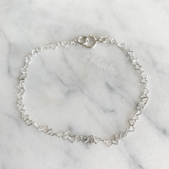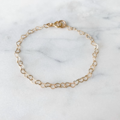 Introducing our “Child Heart Bracelet” – a heartfelt gift for a child that encapsulates the beauty of connections that stand the test of time. Crafted with care and available in your choice of 14k Gold Filled or .925 Sterling Silver, this bracelet is a symbol of love and cherished relationships. The delicate interlocking chain design, adorned with small 3mm hearts, reflects the deep bond you share with your recipient. Available in three sizes – baby, toddler, and child.